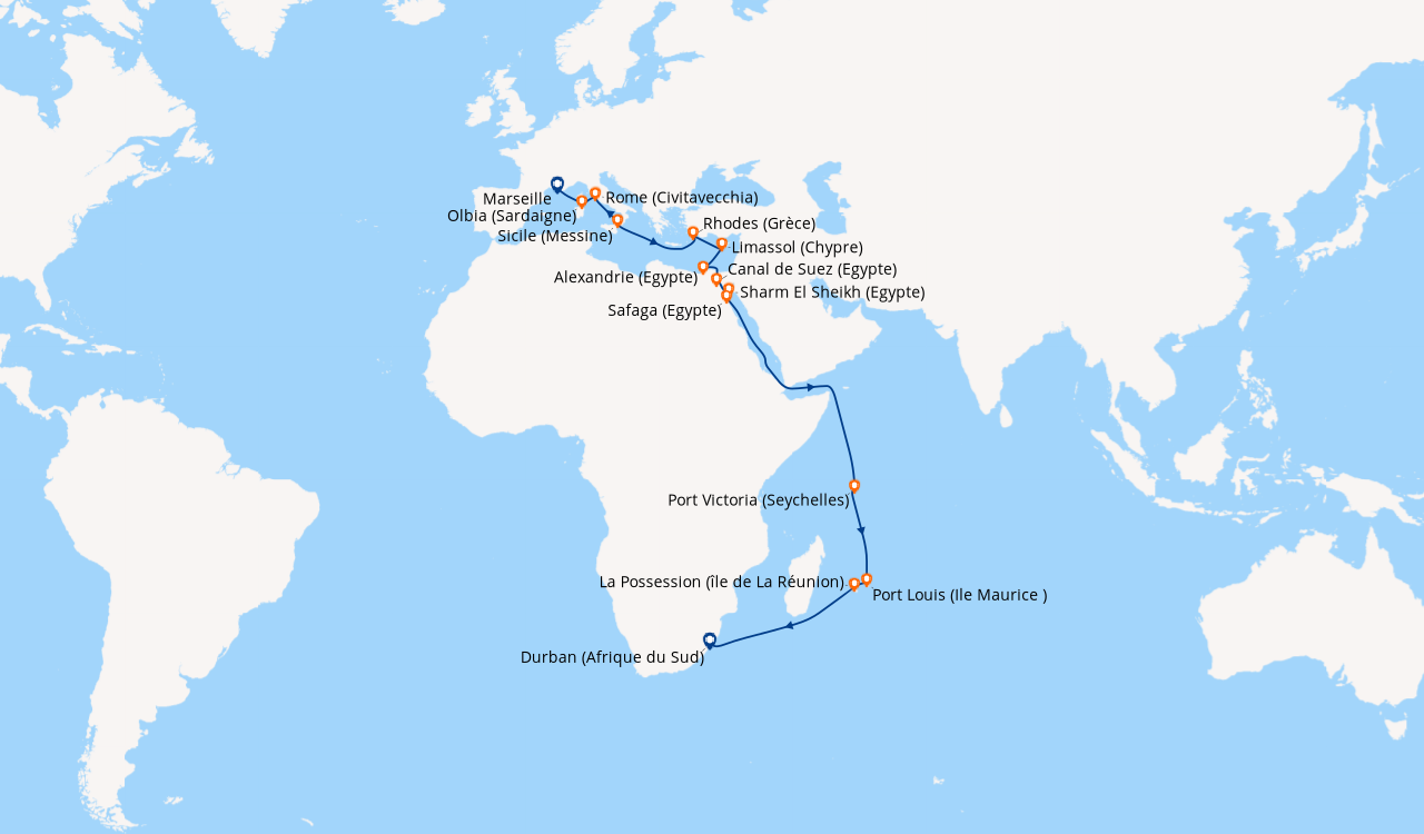 Croisière en Novembre, à destination de l'Afrique, embarquement à Gênes. C’est notre première croisière, le navire est propre, agréable, la nourriture excellente, les concerts de musique classique sont d’une grande qualité, les boissons ont un prix raisonnable, le mode détente est à l’ordre du jour. Les excursions confinées dans un bus, n’étant pas à notre goût, c’est la marche qui a rythmé nos visites lors des escales. Nous aurions aimé une cabine avec balcon, mais par économie nous avons choisi une cabine intérieure. Cette dernière est confortable, avec un service cabine efficace, mais finalement nous l’avons très peu occupée (juste pour dormir, douche), car pour les instants de détente, lecture, bain de soleil, les confortables salons ou solariums sur le pont, sont bien plus agréables. Nous désirons donner une mention spéciale au personnel, charmant, serviable, qui tout au long de notre parcours prennent soin de nous, de notre environnement à tous les niveaux : propreté, service, restauration…. Ainsi qu’aux officiers italiens très professionnels. Nous recommandons la croisière avec MSC Sinfonia.