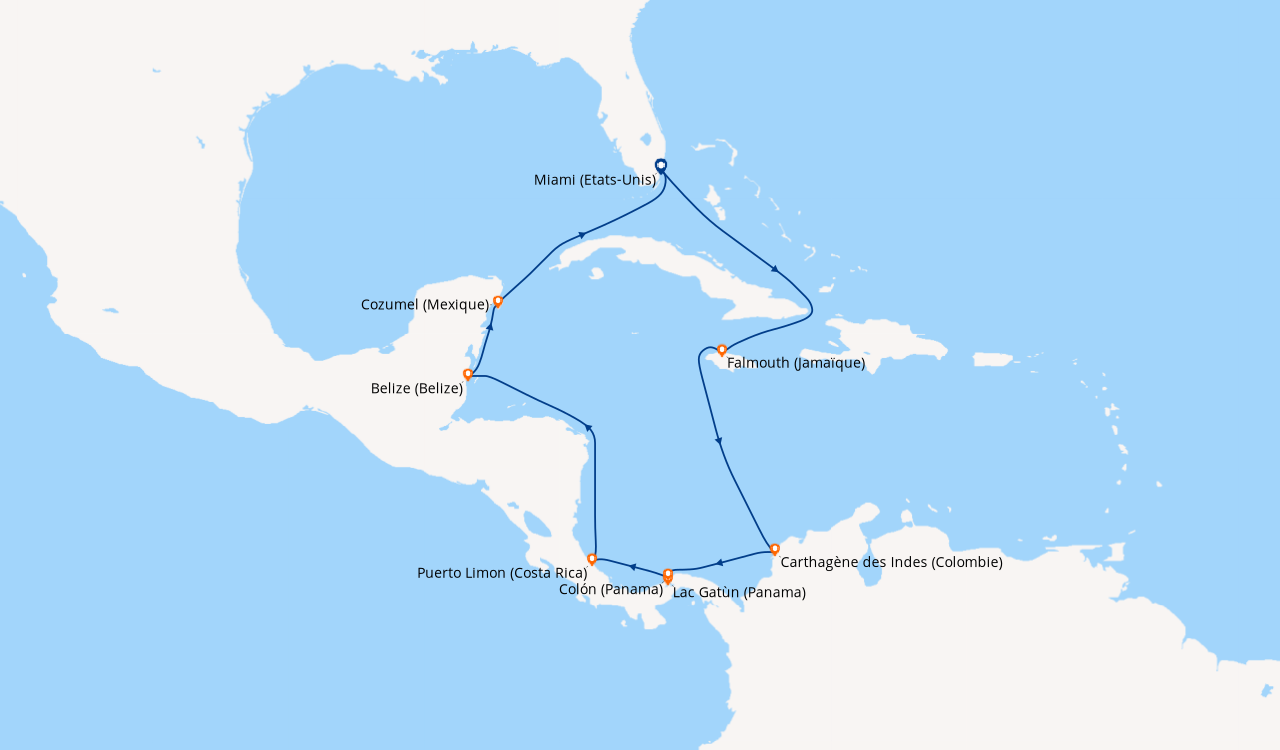 Départ/retour de Miami pour 29 jours en amérique du sud !!! Navire extraordinaire, excellent équipage, excellents repas, des supers moment où on découvert la Colombie, le canal de Panama, l’Équateur, le Pérou, le Chili..meilleur excursion du monde quand on est allée voir les manchots :) :)
