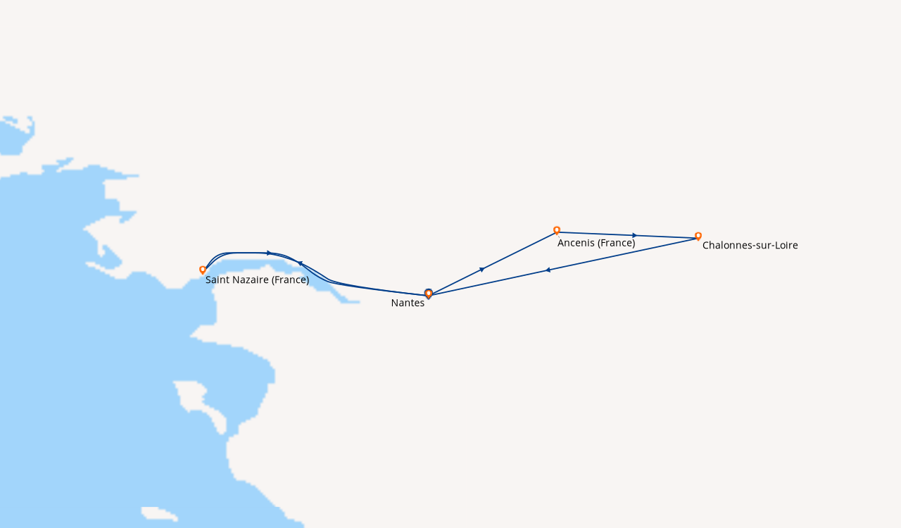 la LOire est magnifique le jour mais trop sombre la nuit pour qu'y voit à 2mètres pendanyt la navigation. Ancenis, Bouchemaine et Angers en excursions, RAS très bien. Animations sur le Loire princesse passables, manque d'en-train des passagers